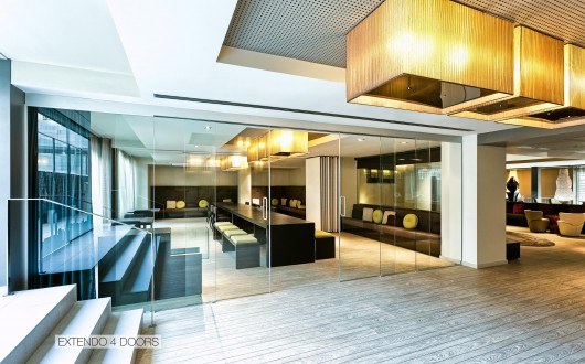 Consigue hasta 5.10m de luz de paso sin guía en el suelo. Abierto, desaparecen las barreras arquitectónicas, cerrado organiza los espacios, manteniendo el vínculo visual.
