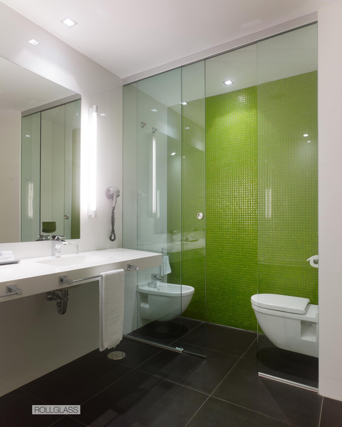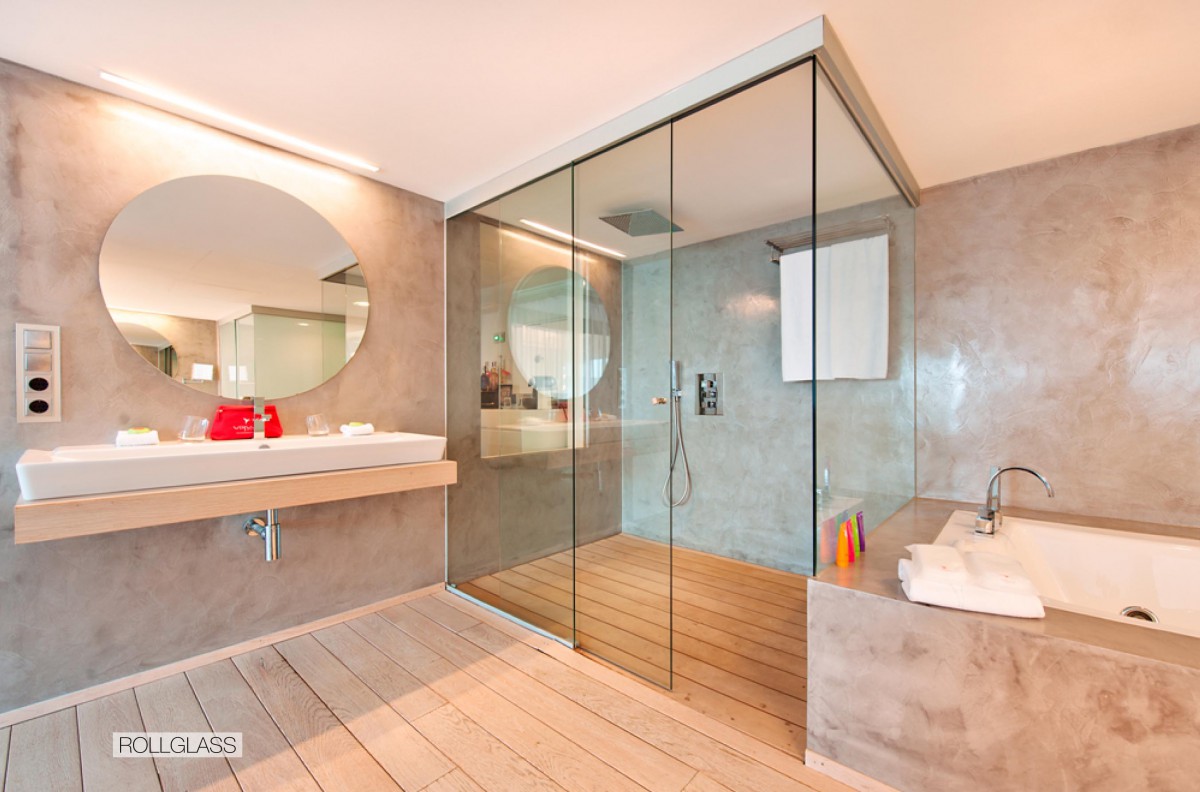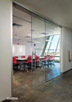 Crea un frente acristalado que combina paneles de vidrio fijos y móviles mediante una única guía.