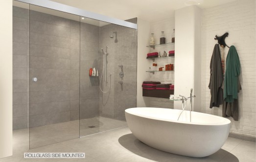 Crea un frente acristalado que combina paneles de vidrio fijos y móviles mediante una única guía.