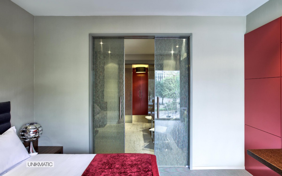 diseñado para crear ambientes a través de dos paneles de vidrio sincrónicos sin marco permitiendo deslizar las hojas de manera simultánea.